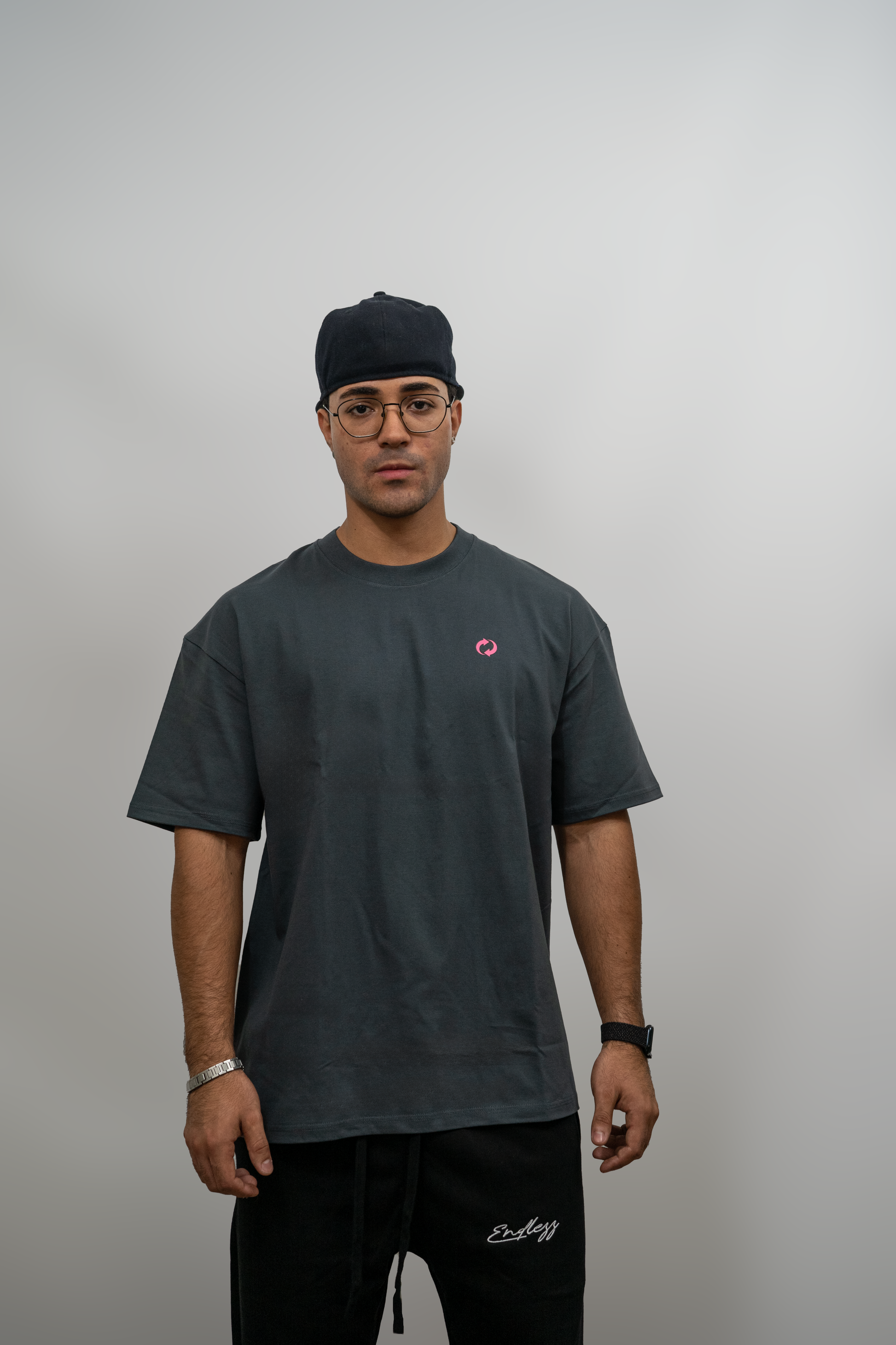 The “Core Statement” Tee captures the bold spirit of Endlezz — minimal up front, powerful in the back. Made from premium mid-weight cotton, it delivers a relaxed, structured fit with a smooth drape. The deep charcoal base contrasts perfectly with the vibrant pink details: the small chest logo on the front and the oversized Endlezz print across the back.