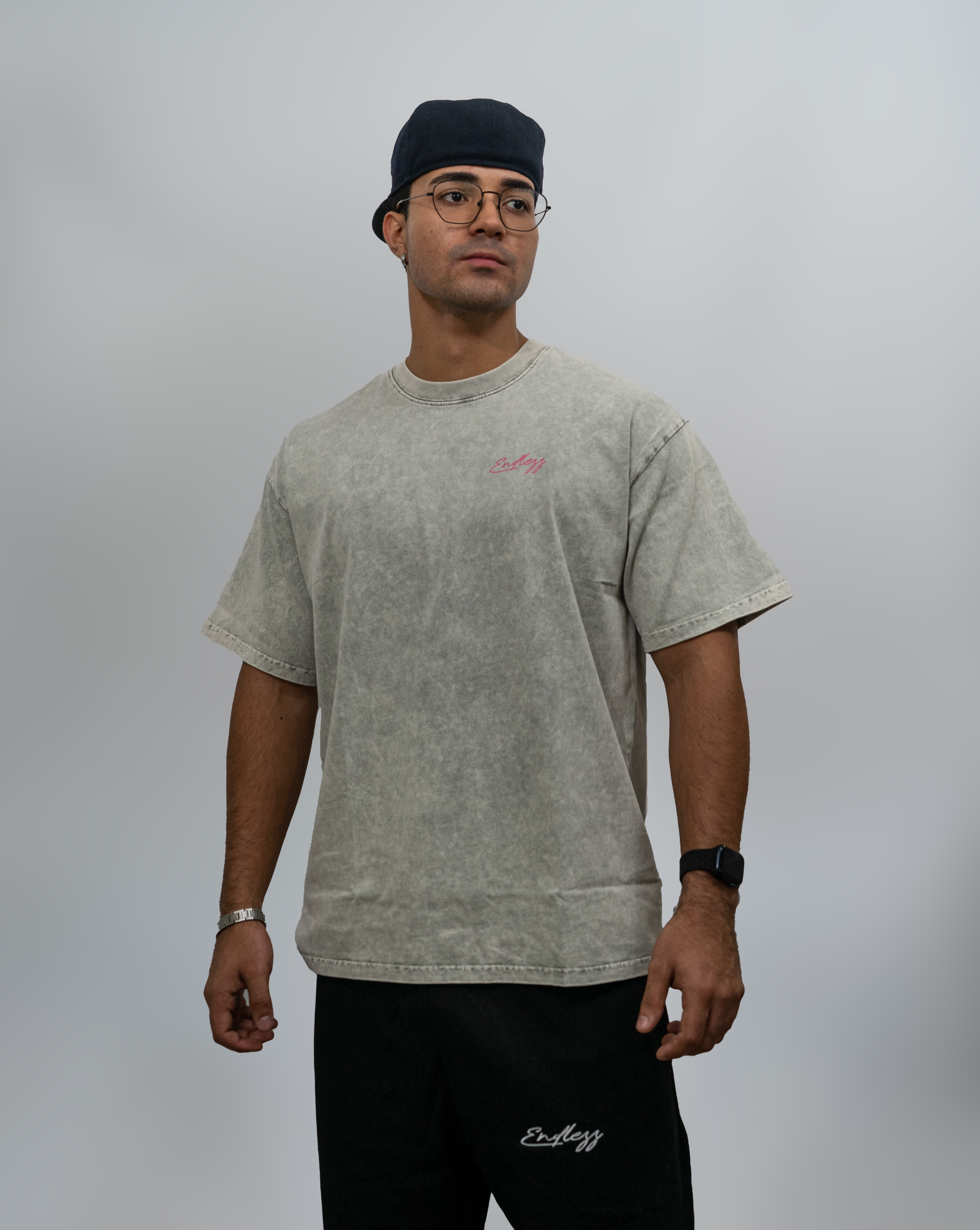 The “Global Vision” Tee – Washed Gray & Pink Edition represents the universal reach and mindset of Endlezz. Crafted from heavyweight, acid-washed cotton, it delivers a vintage aesthetic with a relaxed oversized fit. The washed grey tone gives it a lived-in look, while the vibrant pink graphics bring the piece to life — a minimalist Endlezz script on the chest and a bold globe print on the back symbolizing limitless expansion.